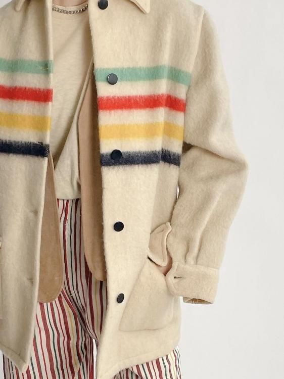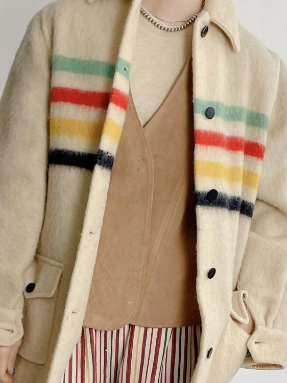 60'S VINTAGE Wool blanket coat "Hudson's Bay "