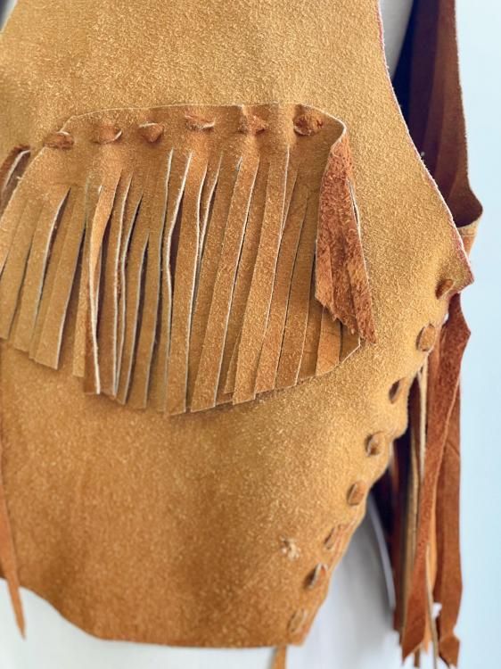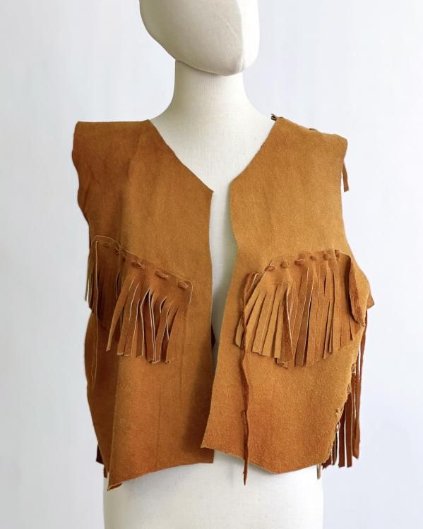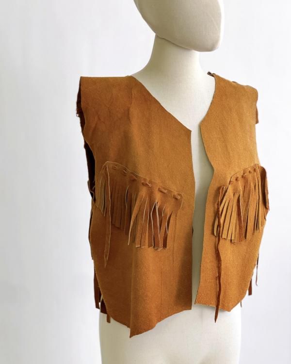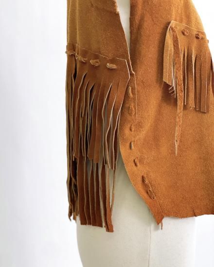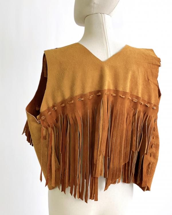 VINTAGE Suede Leather fringe vest "Handmade"
